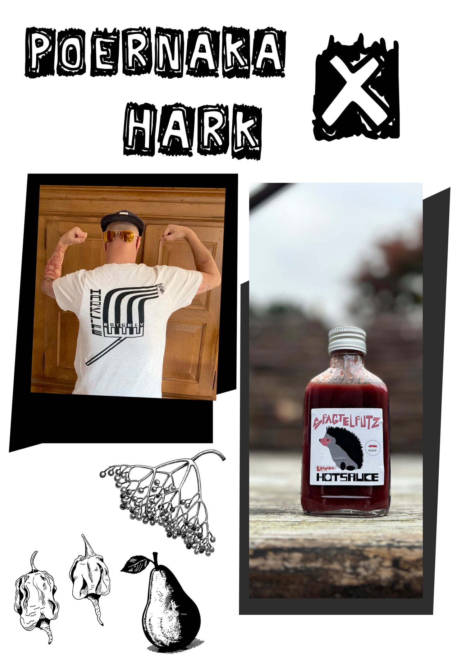 Poernaka introduceert met trots een unieke hot sauce, speciaal ontwikkeld als aanvulling op zijn opvallende t-shirtontwerp. Deze bijzondere saus is meer dan alleen een smaakmaker; het is een combinatie van creativiteit, passie en een verfijnde balans van smaken.